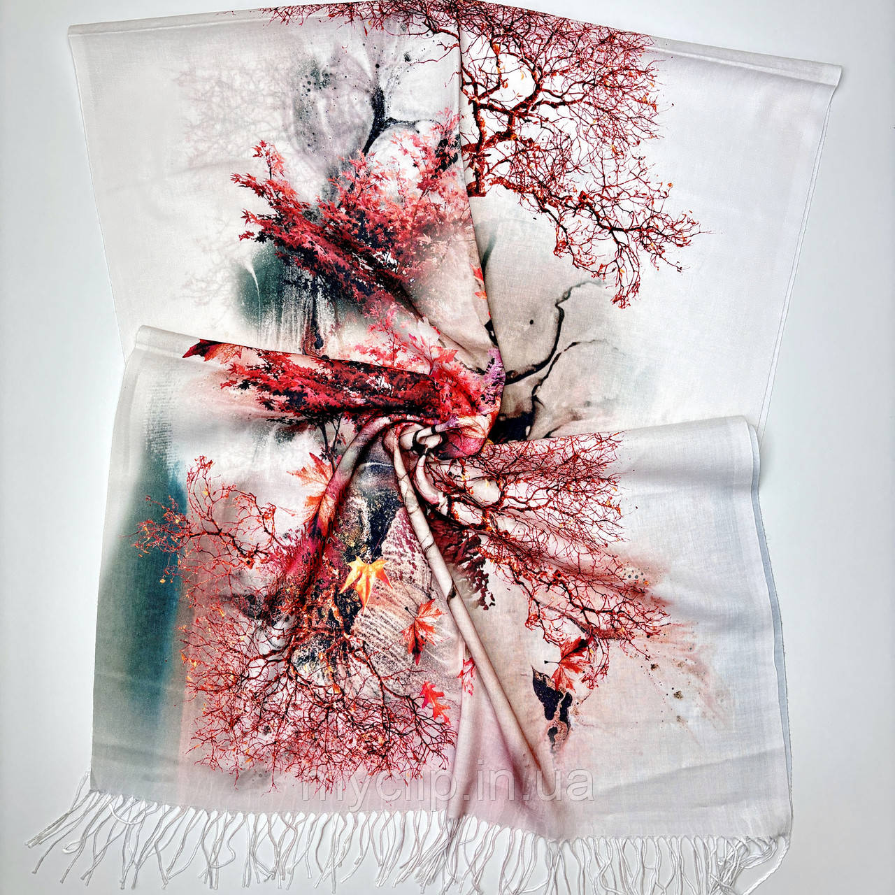 Вишуканий демісезонний шарф палантин з рослинним малюнком. Натуральний жіночий бавовняний шарф